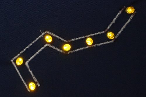 我々は、スマートテキスタイルによる革新技術として、電子機器や端末を身に着ける技術や衣類のエレクトロニクス化に取り組んでいる。柔軟性や伸縮性を維持しつつ、耐久性や安定した導電性を確保する必要があることから、多くの課題が存在する。特に、織編物上に電子回路や部品を実装する「織編物エレクトロニクス」という新しい概念を提案し、導電糸を活用した多様な縫いパターンによる電子部品の機能実現を検討している。
