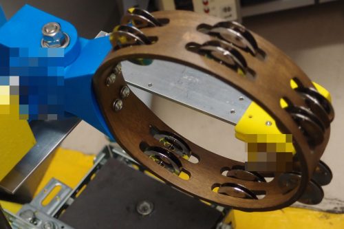 IROPS-2号機において、これまでタンバリンは横に固定して演奏制御していました。これはこれでタンバリンの、チャリ チャリ チャリ チャリと歯切れの良い音色で演奏でき良かったのですが、以前より、タンバリンの縦振りによる自動演奏を実現したいと考えておりました。
