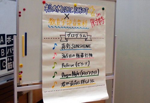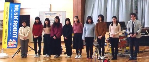 今回のMUSICROBOTは、将来、音楽の先生を目指している音楽科の学生とのコラボでした。ロボット開発者としてギター伴奏していて感じたのは、音楽科の学生のこの演奏会にかける熱い思いでした。1曲1曲をとても丁寧に、心のこもったパフォーマンスをしていました。今後の活躍が楽しみです。卒論や修論で忙しい時期に、どうもありがとう。
