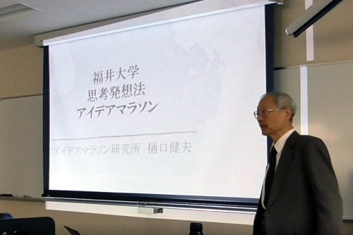 アイデアマラソン発想法として知られるアイデアマラソン研究所の樋口健夫 先生がご来学され、ご講演されました。ノートにより発想が、さらに、人生も一変するほどのことが起こるの?ほんとかな?どうして?と思われるかと思います。ご関心のある方は、簡単な方法なのでノートを用意してご自身で挑戦して頂くとよろしいかと思います!