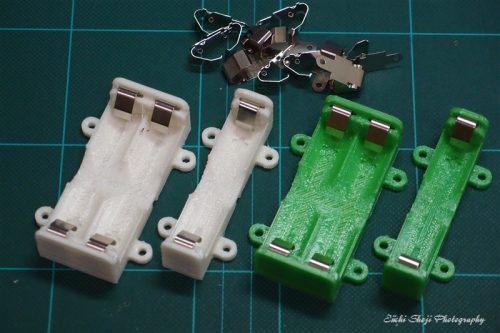 3Dプリンタで電池ボックスを製作 2018/6/7 2021/5/5 試作品によっては、3Dプリンタで電池の本数と形状に合わせた電池ボックスを制作します。電池をケースに組み込む場合に、ケース一体型のものが出来るので便利です。 関連
