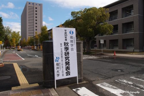 【学会発表】導電性セルロースナノファイバーの創製と耐放射線性の効果 – 平成30年度 繊維学会 秋季研究発表会 2018/10/30 2018/11/9 平成30年度 繊維学会秋季研究発表会 プログラム 福井大学文京キャンパスにて、2018年11月1日(木)~2日(金) の会期で開催されます。 研究室からは以下の研究発表を行います: 2018年11月2日(金) 10:20 C会場(総合図書館1階展示ホール) 2C05 導電性セルロースナノファイバーの創製と耐放射線性の効果 (福井大院・工)〇庄司英一,池内拓海 学会当日(早朝) 関連