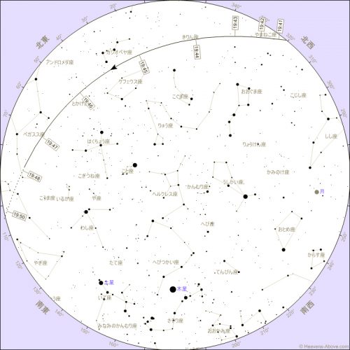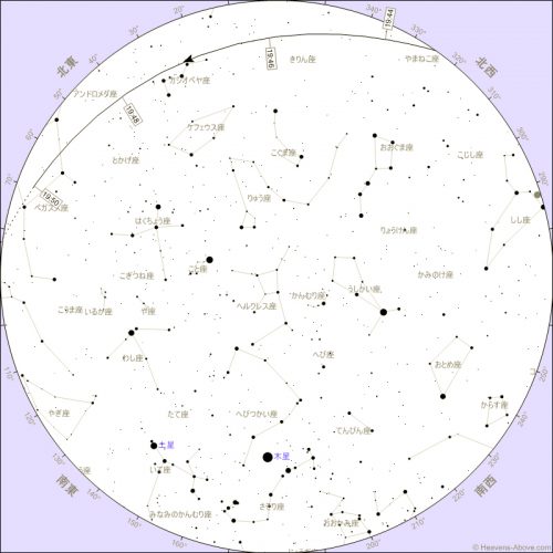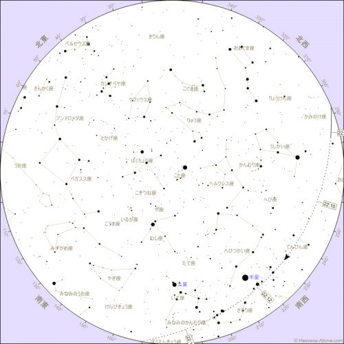 昇り始め | 22:06:34 | 0° | 293° (西北西) | 2,347 | 0.8 | -30.3° |