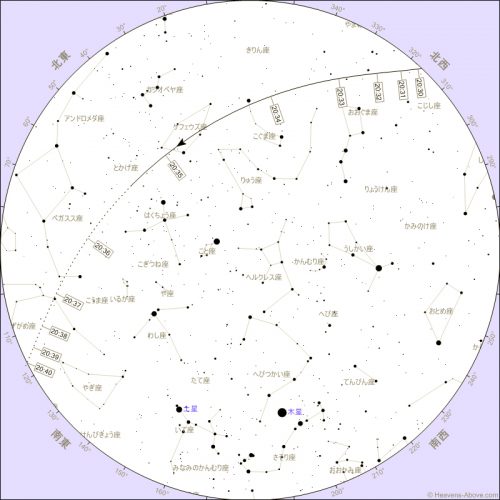 昇り始め | 20:29:32 | 0° | 316° (北西) | 2,354 | 1.8 | -17.6° |