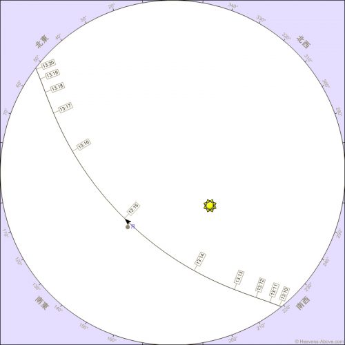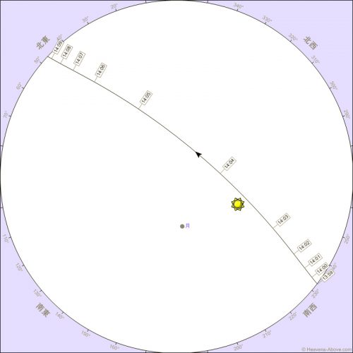 昇り始め | 13:58:51 | 0° | 232° (南西) | 2,347 | 0.5 | 56.5° |