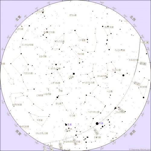 昇り始め | 21:16:57 | 0° | 301° (西北西) | 2,350 | 1.2 | -24.7° |