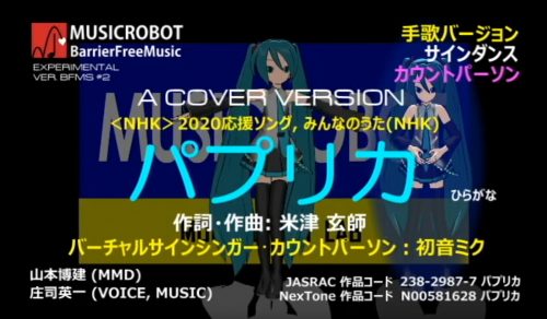この動画では、初音ミクをバーチャルサインシンガーとカウントパーソンとして起用しました。東京2020オリンピックの応援ソングのパプリカ、自分のできる方法で、パプリカが踊れたらと思います。