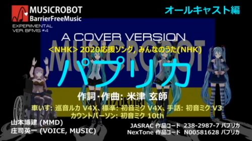 パプリカ (米津玄師, Key A) – 車いす 一緒に踊ろう! 巡音ルカ 初音ミク – BarrierFreeMusic / MUSICROBOT