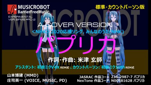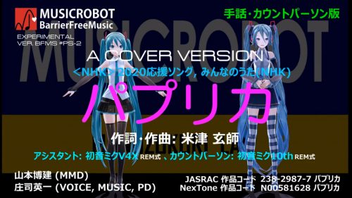 2020.2.8 Ver.1 公開 手話歌・カウントパーソン版 初音ミクV4X + 初音ミクV2 (https://youtu.be/Eq3oB_o0bek)