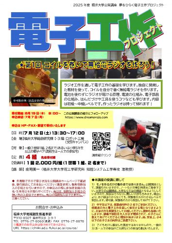 規模を縮小して、「夢を拓く電子工作プロジェクト 2025」の1回目を7月12日(土)に開催します。ラジオ工作は世代を越えて楽しめる電子工作の原点です。みなさまとラジオの話題で花が咲きますこと、楽しみにしております。ご関心、お時間ございましたら、よろしくお願いいたします。