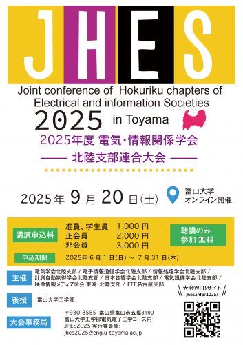 2025年9月20日(土)、北陸電気関係学会 北陸支部連合大会(JHES2025) が開催され、庄司研究室から計6件の研究発表を行いました。幅広い分野の研究者・学生と活発な質疑応答が行われました。