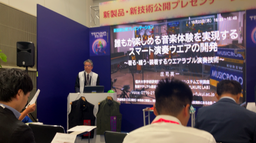 今回のプレゼンテーションでは、着るだけで誰もが楽しく演奏に参加できるウェアラブル演奏技術「スマート演奏ウェア」をご紹介させていただきました。研究室で取り組んできた “音楽をライフ伴奏として人に寄り添う” という理念を形にした試作品であり、幼児から高齢者に至るすべての世代を笑顔にできる工学技術として位置づけています。