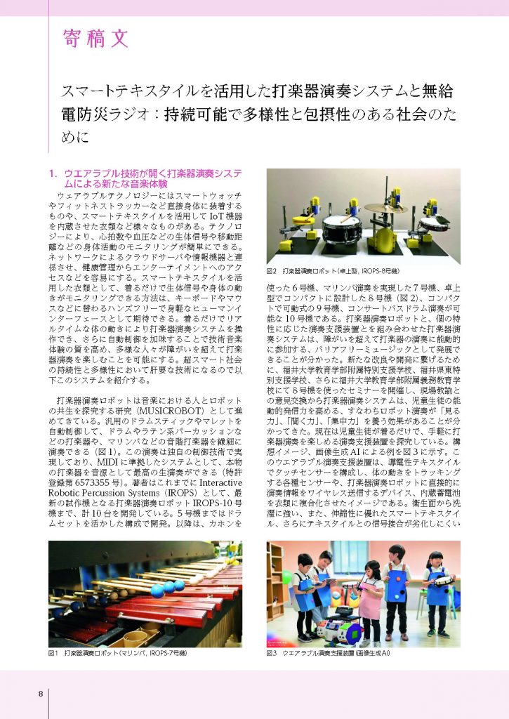 スマートテキスタイルを活用した打楽器演奏システムと無給電防災ラジオ:持続可能で多様性と包摂性のある社会のために